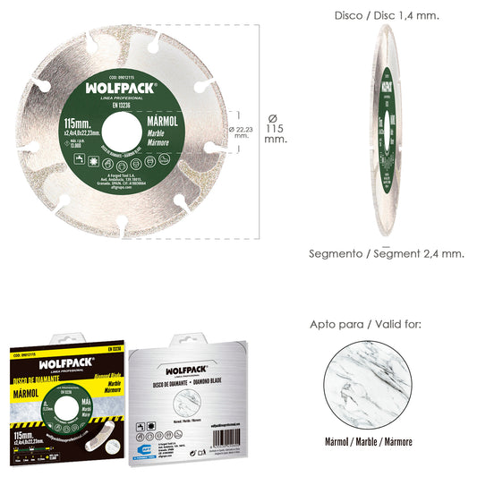 Disco Diamante Ø 115 mm. Marmol. Filo Especialmente Diamantado