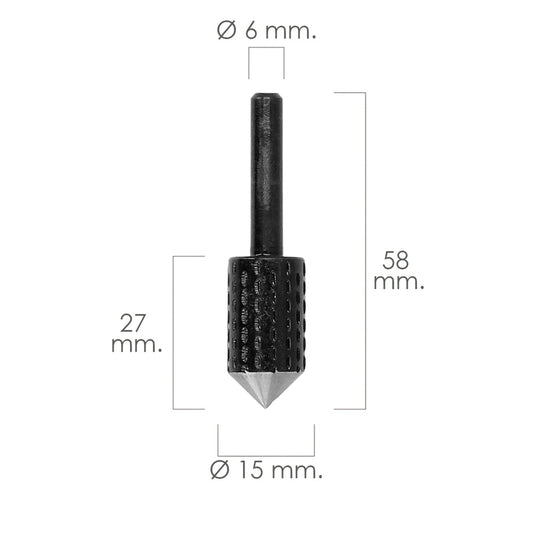 Fresa Rotativa Para Madera Conica Ø 6 a 15 mm. Para Taladro / Fresadora