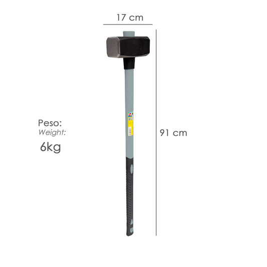 Maça Com Cabo De Fibra De Vidro 6 Kg. Cabeça Forjada, Com Anel Anti Vibração, Maça / Articulação