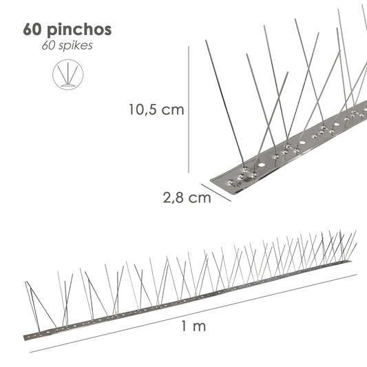Espeto Anti Pombo/Pássaro 1 Metro Espeto Duplo Inox 60 Espetos. Adaptável a Várias Posições