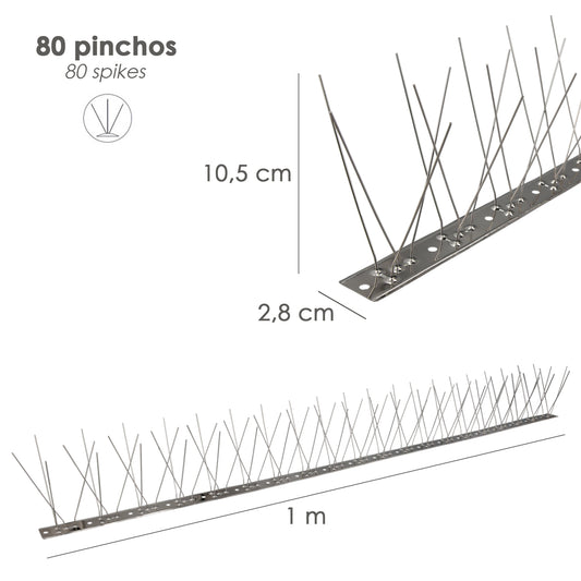 Espeto Anti Pombos/Aves 1 Metro Espeto Inox Duplo 80 Espetos. Adaptável a Várias Posições
