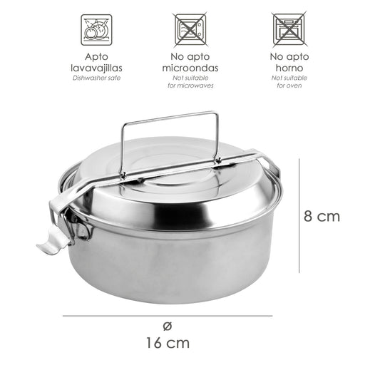 Lancheira Metal Inox Com 2 Pratos Ø 16 cm. Lancheira, lancheira de metal, suporte de comida de metal,