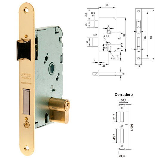 Cilindro de segurança Tesa T70 30x30 Câmera curta banhada a latão