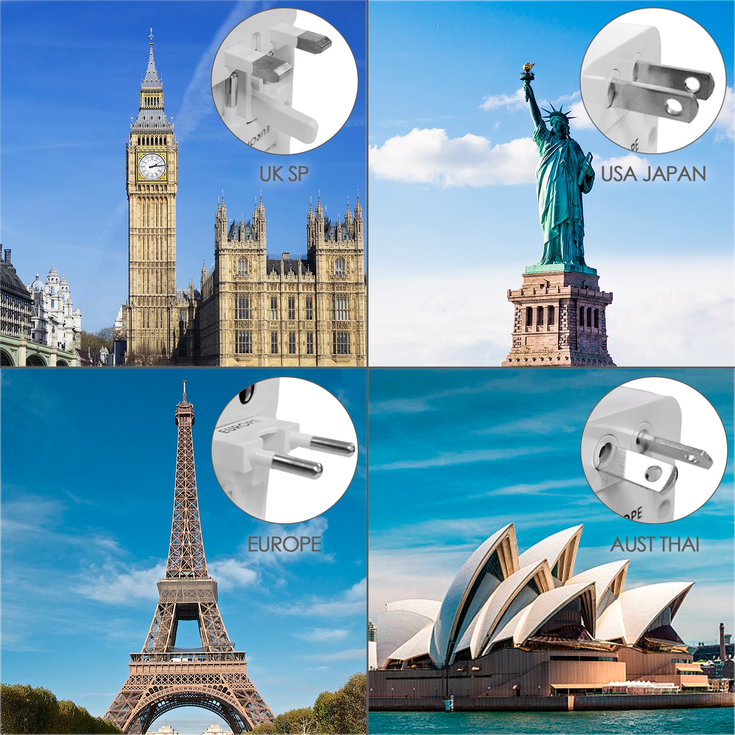 - Artículo también conocido como adaptador viaje, adaptador universal, adaptador eléctrico, kit de adaptadores, adaptador enchufe internacional, adaptador viaje universal, adaptador corriente portátil, adaptador enchufe blanco, etc.