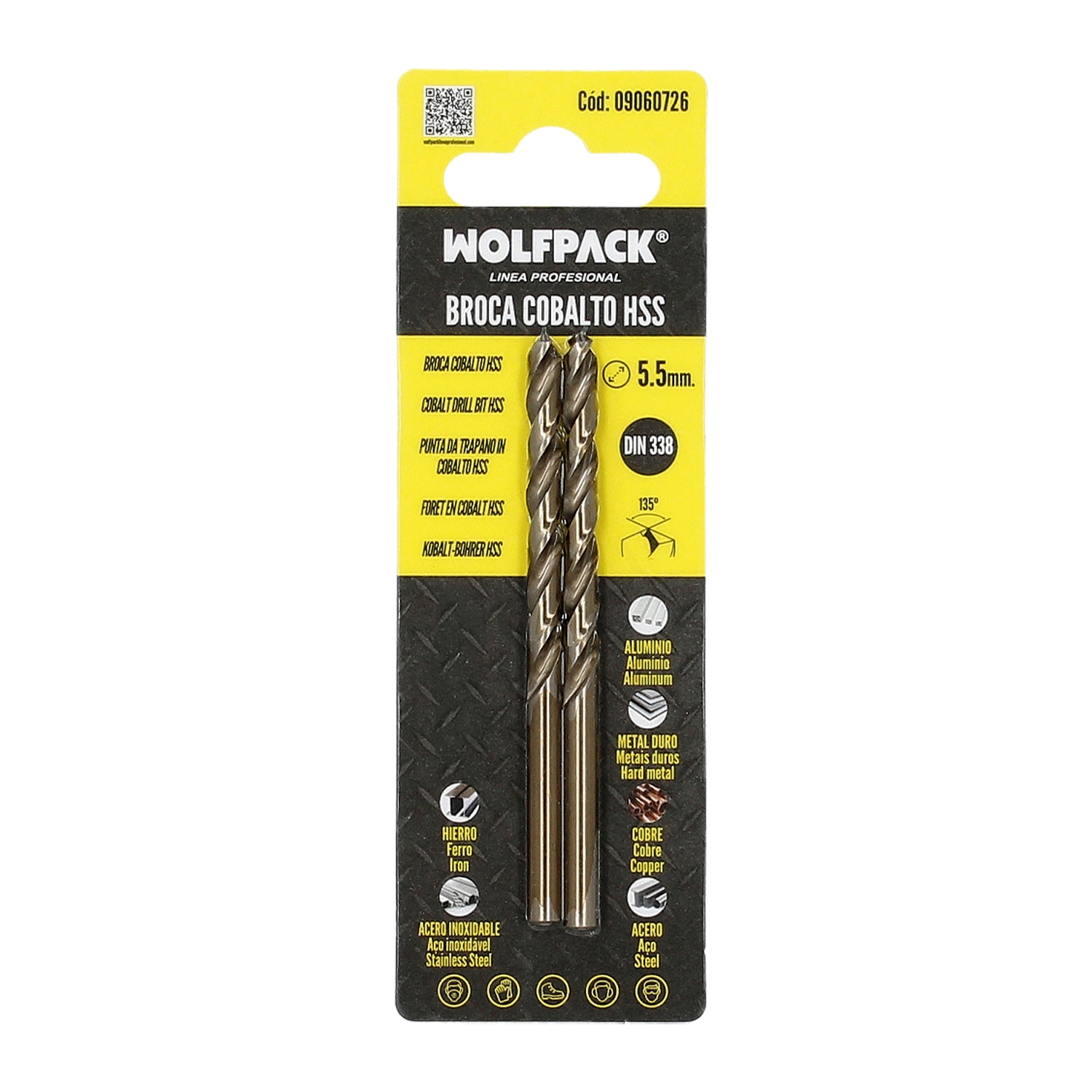 Broca Cobalto Hss Cilindrica 5,50 mm. Blister 2 Unidades.