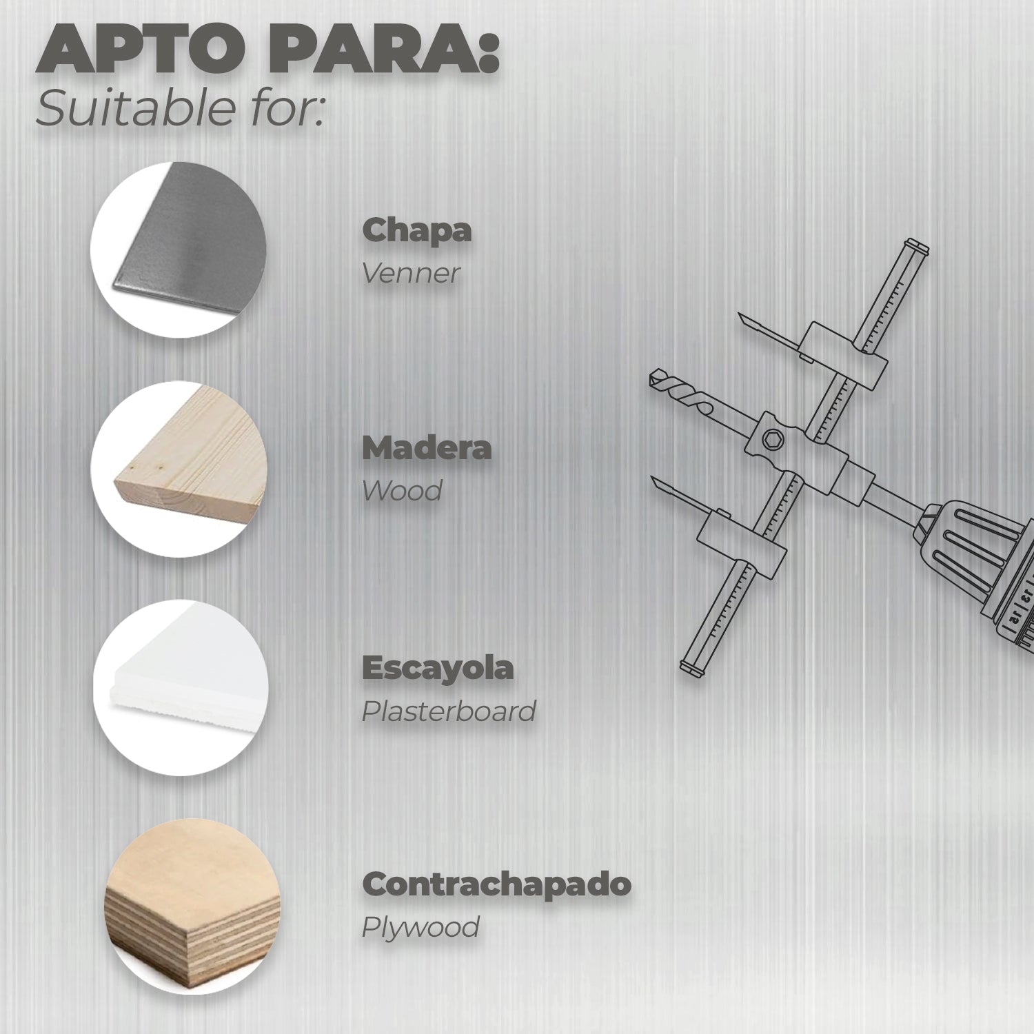 - Apto para chapa, madera, escayola, contrachapado, etc.