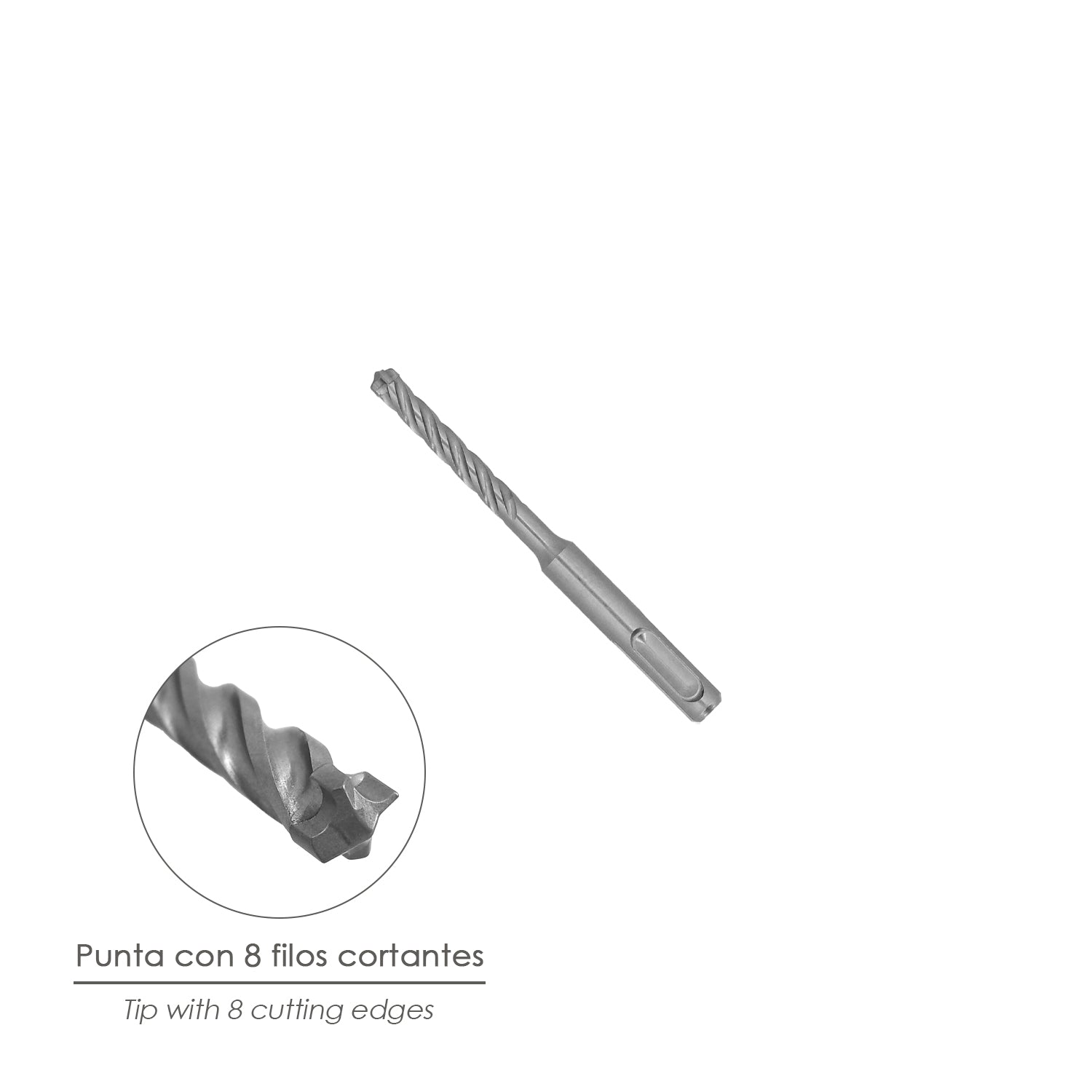 Broca Sds Plus 8 Filos Cortantes Especial Para Hormigon Armado Ø 8 x 110 mm. Broca Paredes, Broca Cimientos, Broca Muros