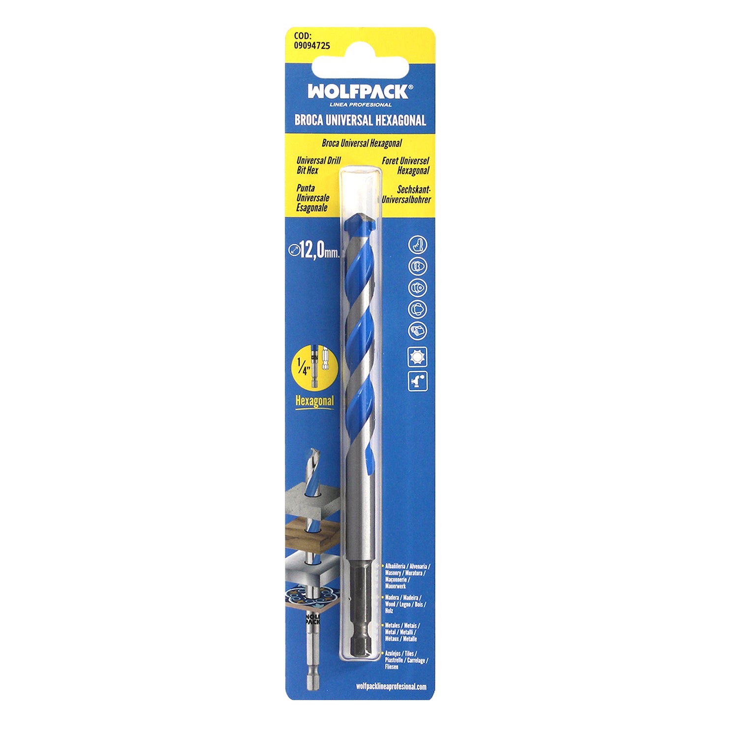 Broca Universal Hexagonal Ø 12,0 mm. (Blister 1 Pieza) Broca Azulejos, Cerámica, Mármol, Hormigón, Metal, Madera, Plástico
