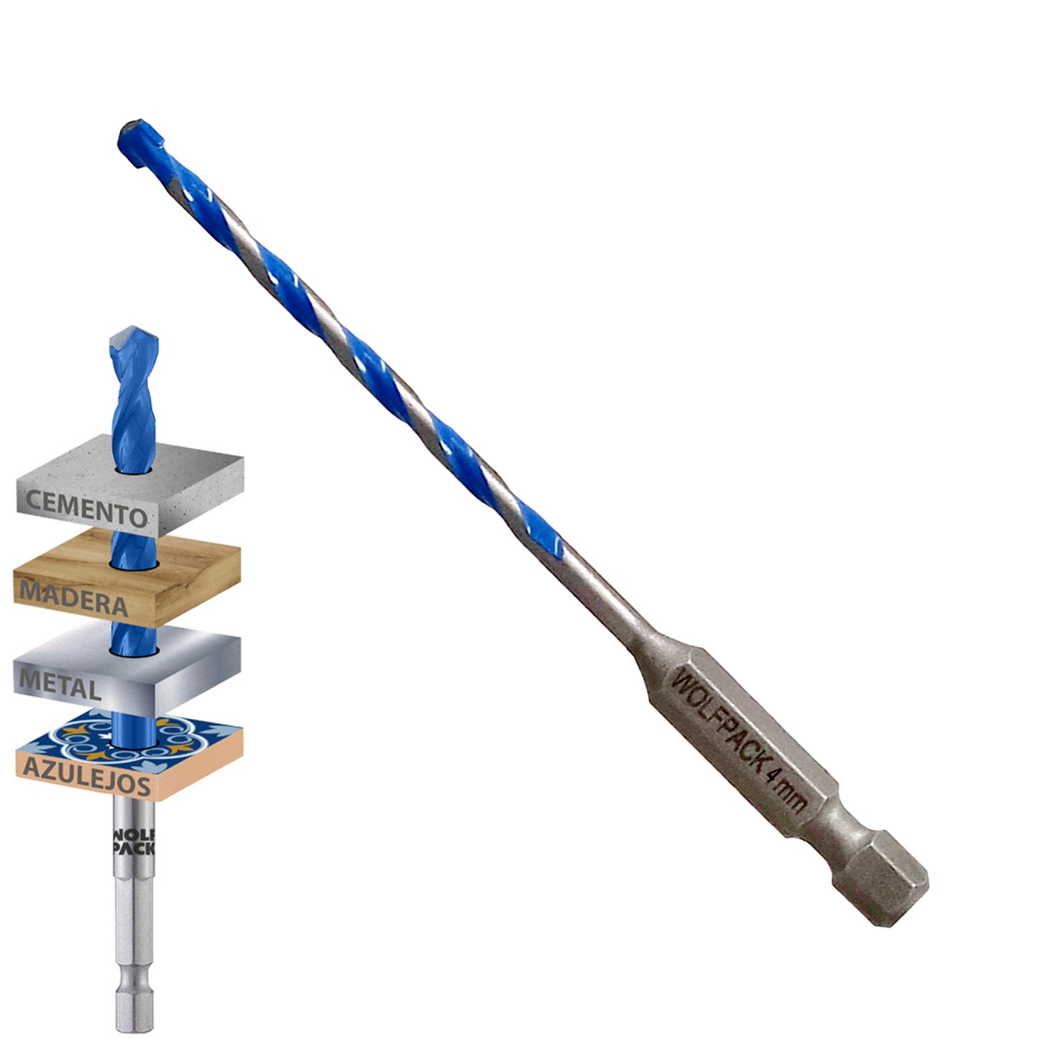Broca Universal Hexagonal Ø 4,0 mm. (Blister 1 Pieza) Broca Azulejos, Cerámica, Mármol, Hormigón, Metal, Madera, Plástico