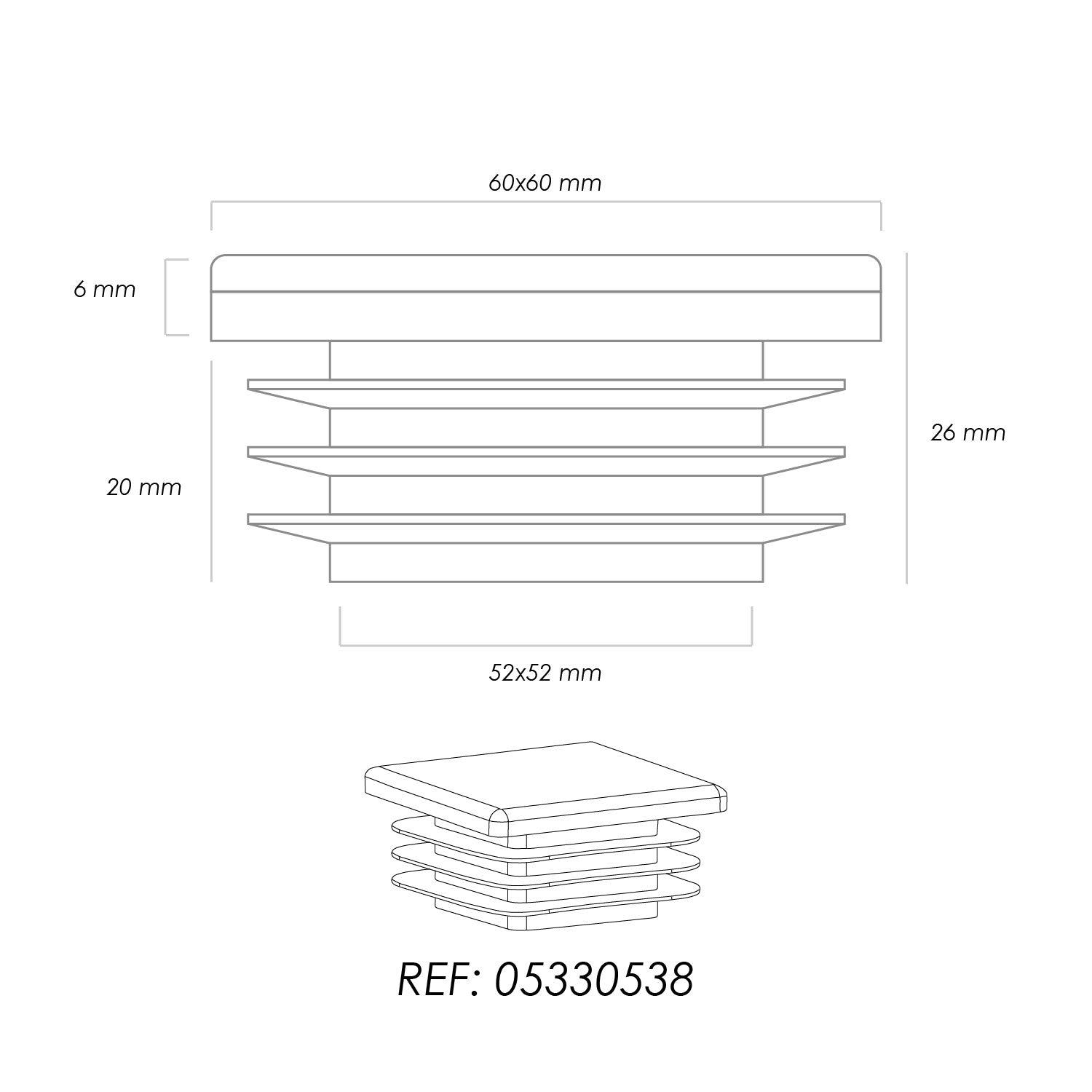 Contera Interior Plastico Cuadrada 60x60 mm. Color Negro. Bolsa 50 Unidades. Contera Mesa, Silla, Muebles, Estanteria