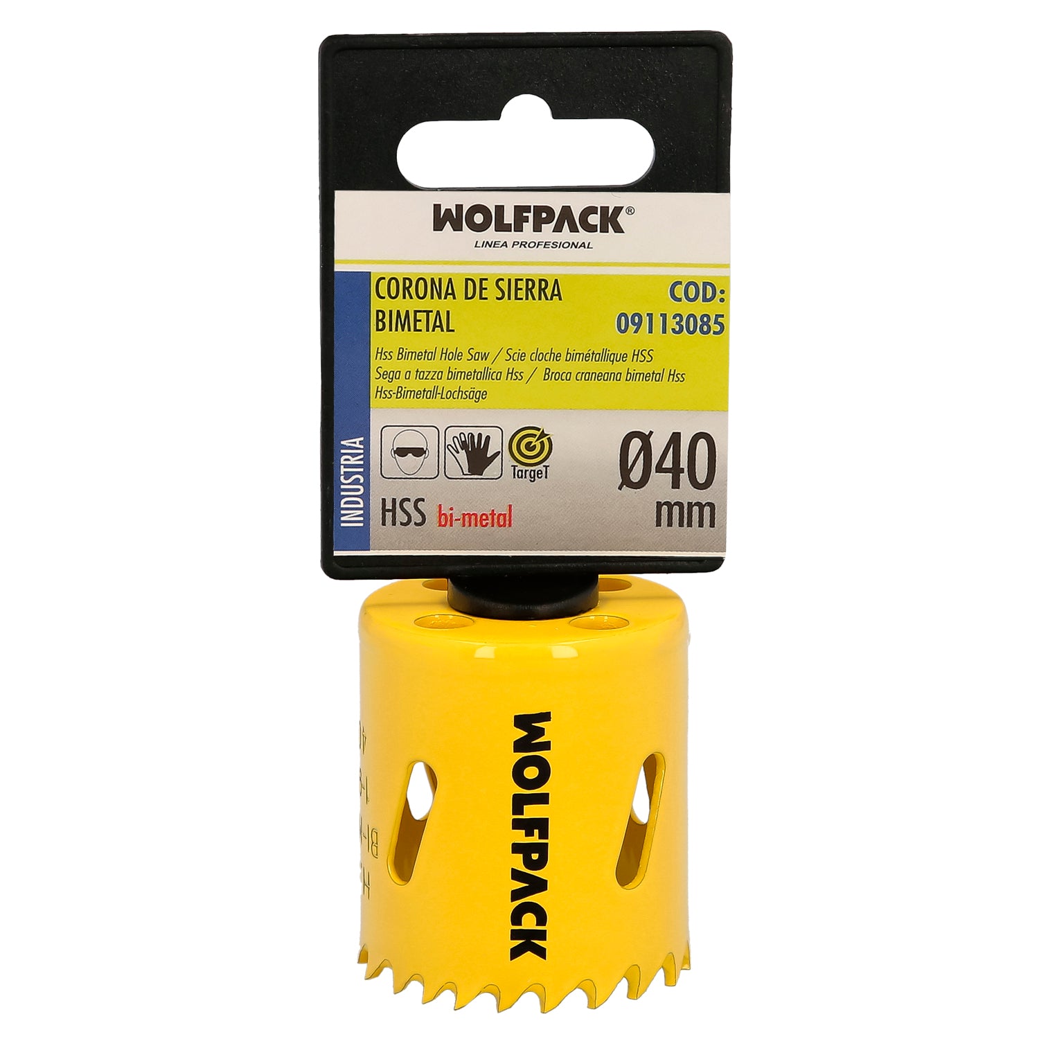 Serra de coroa bimetálica Ø 40 mm. Base Reforçada e Temperada Térmica. Coroa de madeira, furos de madeira, aço, ferro, plásticos