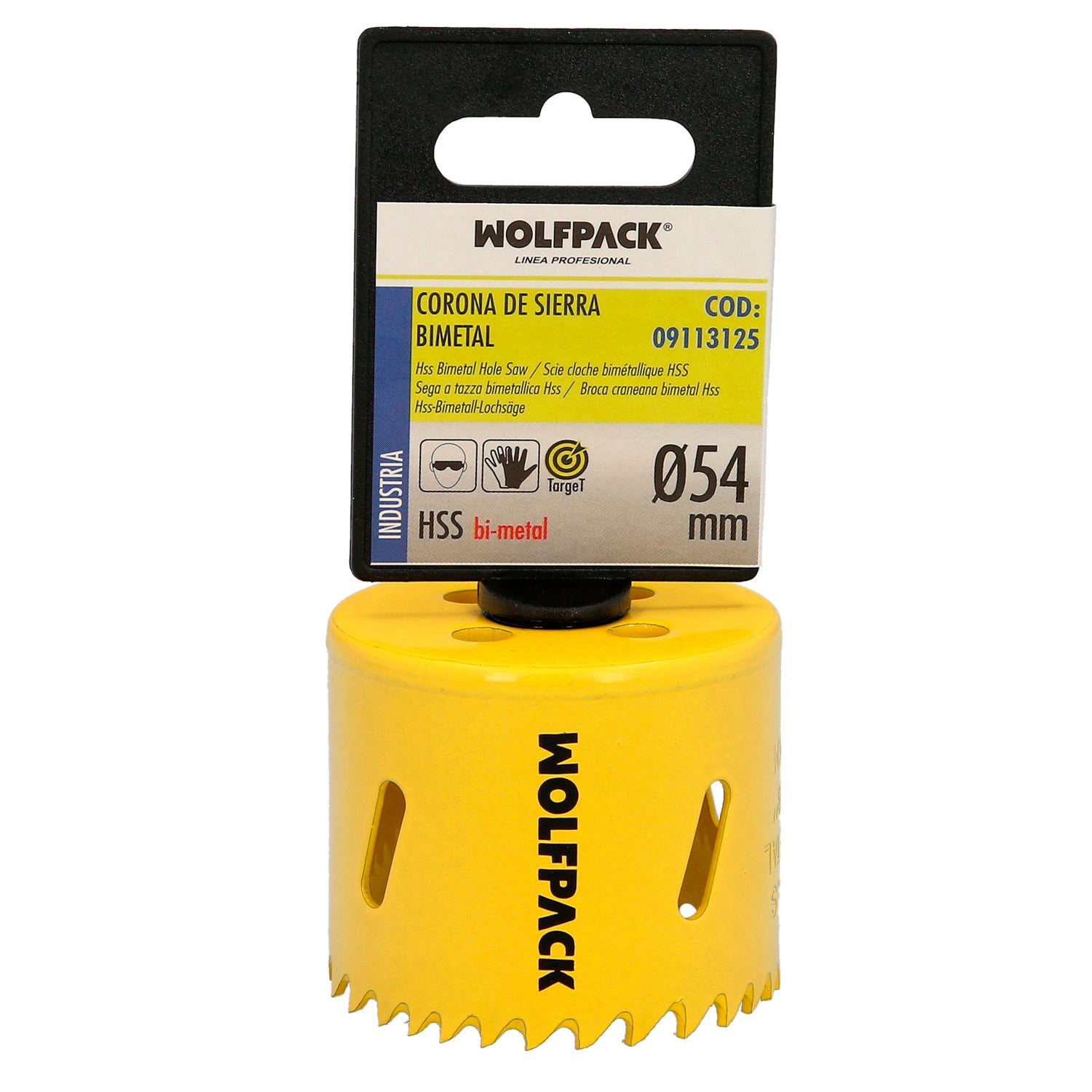 Serra de coroa bimetálica Ø 54 mm. Base Reforçada e Temperada Térmica. Coroa de madeira, furos de madeira, aço, ferro, plásticos