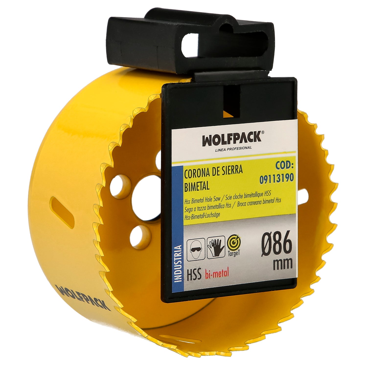 Serra de coroa bimetálica Ø 86 mm. Base Reforçada e Temperada Térmica. Coroa de madeira, furos de madeira, aço, ferro, plásticos