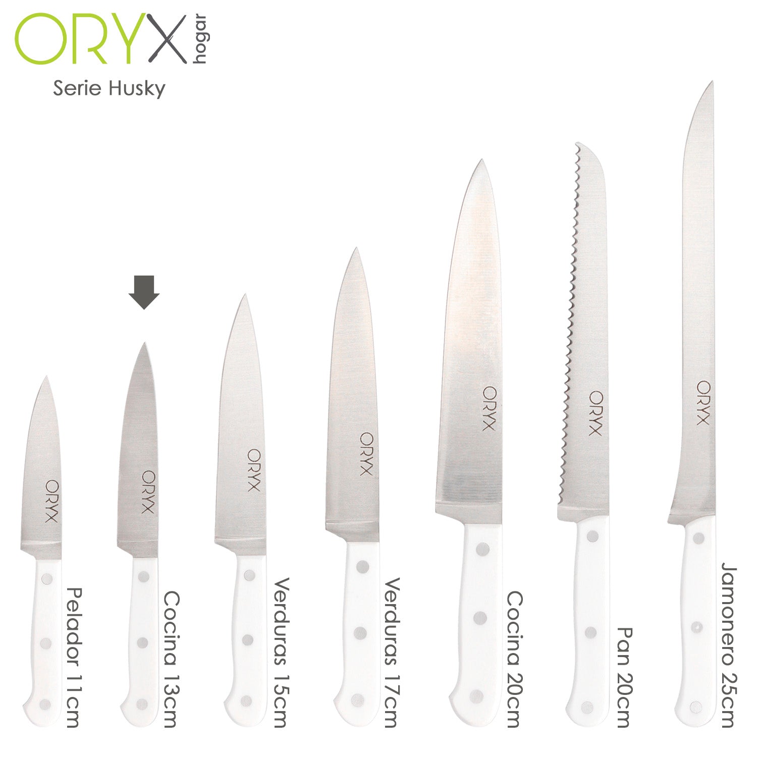 Faca de Cozinha Husky 13 cm. Lâmina de aço inoxidável, faca de carne, faca de peixe, faca de chef, cabo ergonômico branco