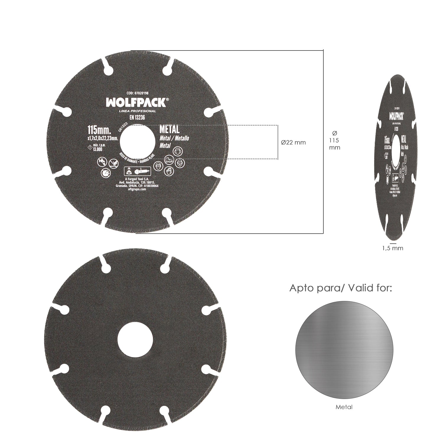 - Recomendado para múltiples tipos de metal, en particular: acero, chapa, barras de refuerzo, hierro fundido, aluminio y metales no ferrosos.