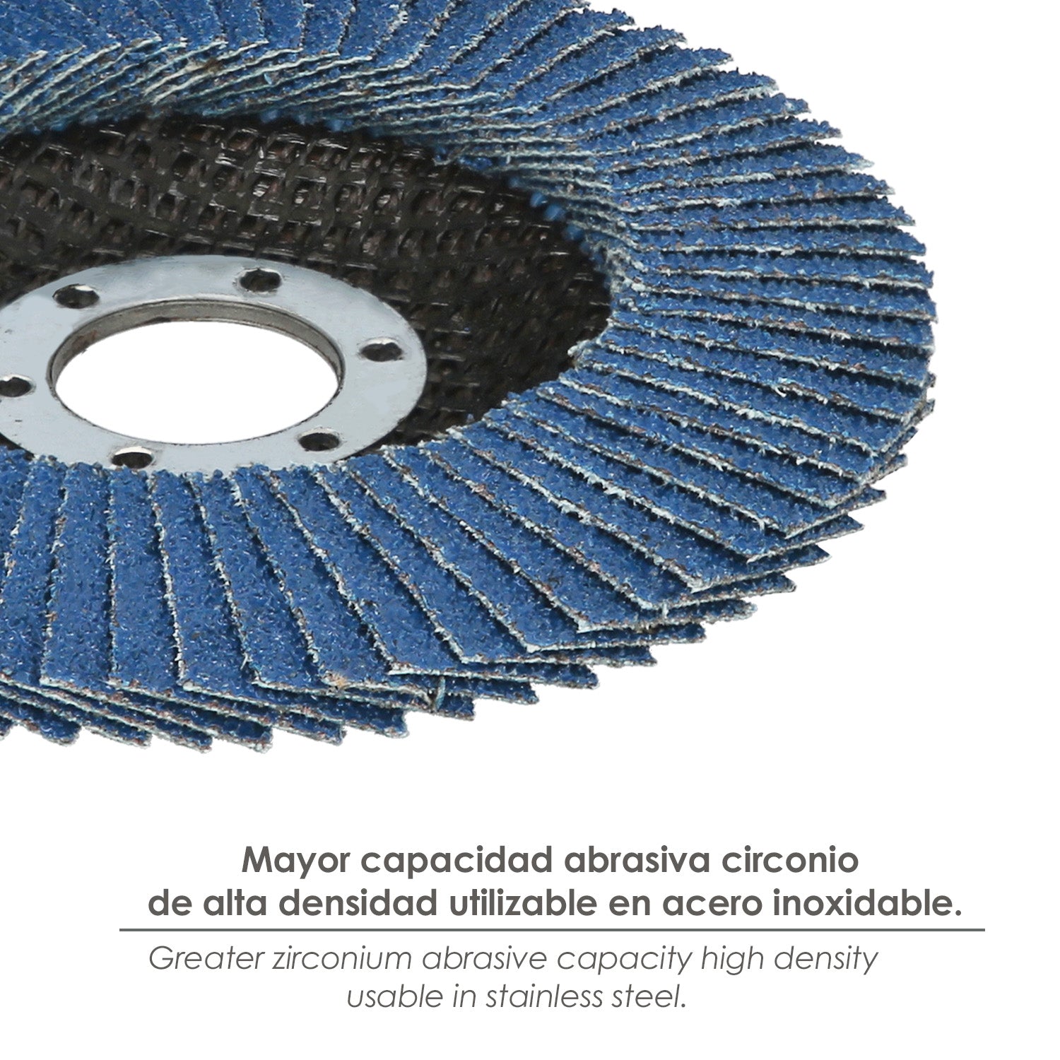 - Mayor capacidad abrasiva circonio de alta densidad utilizable en acero inoxidable.