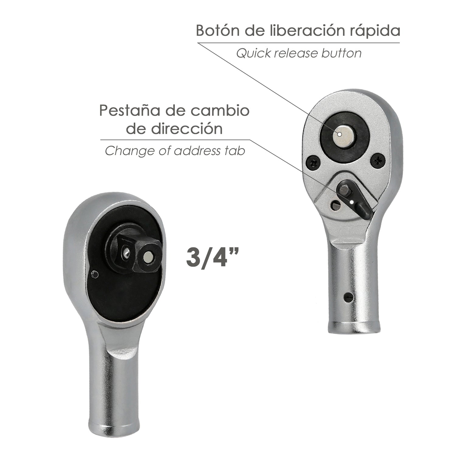 - Catraca reversível, com botão de liberação rápida para o soquete.