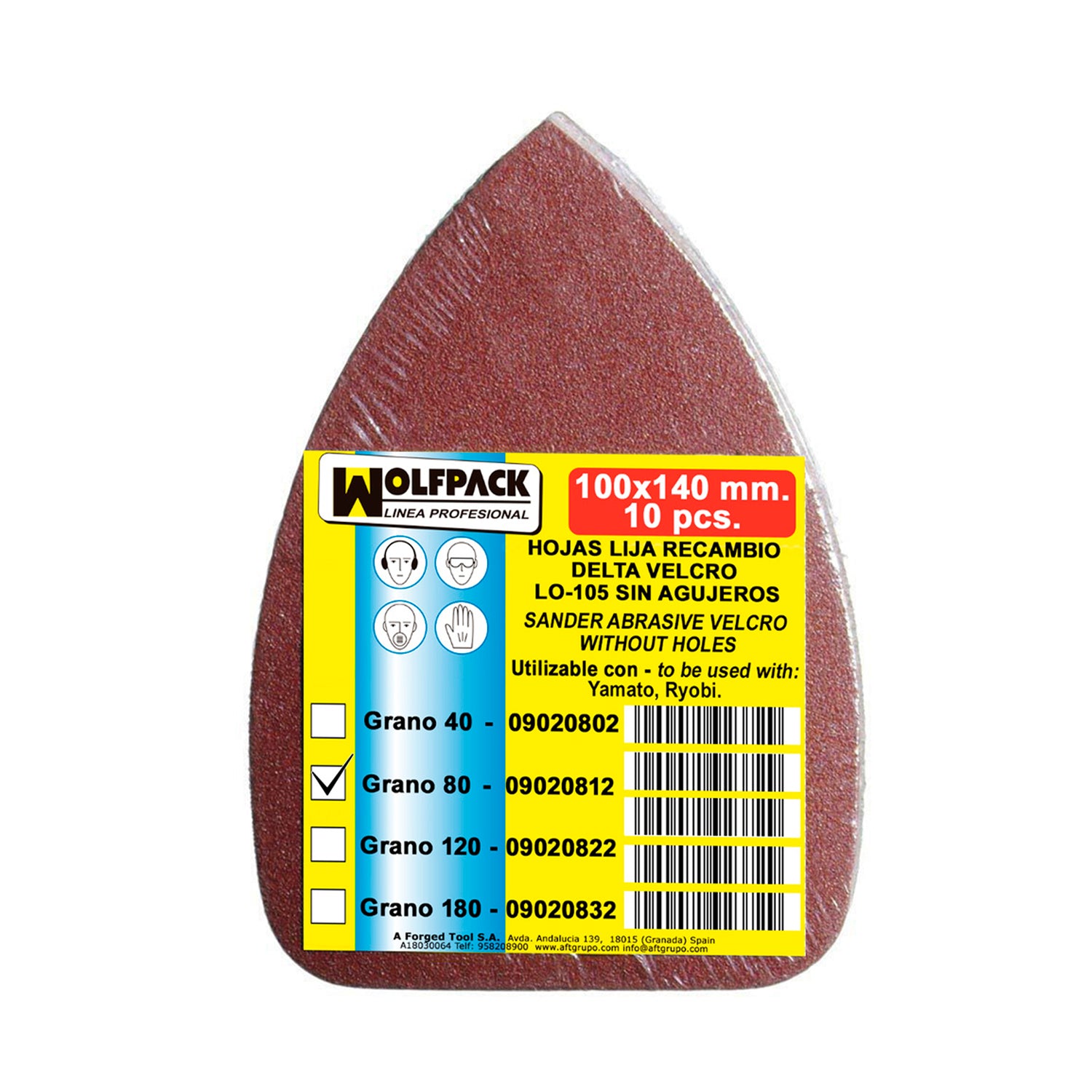 Lixa de reposição Delta 140x100 mm. sem Furos Grão 80 (10 Peças)