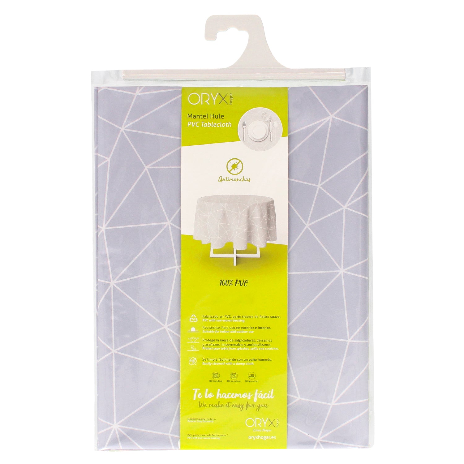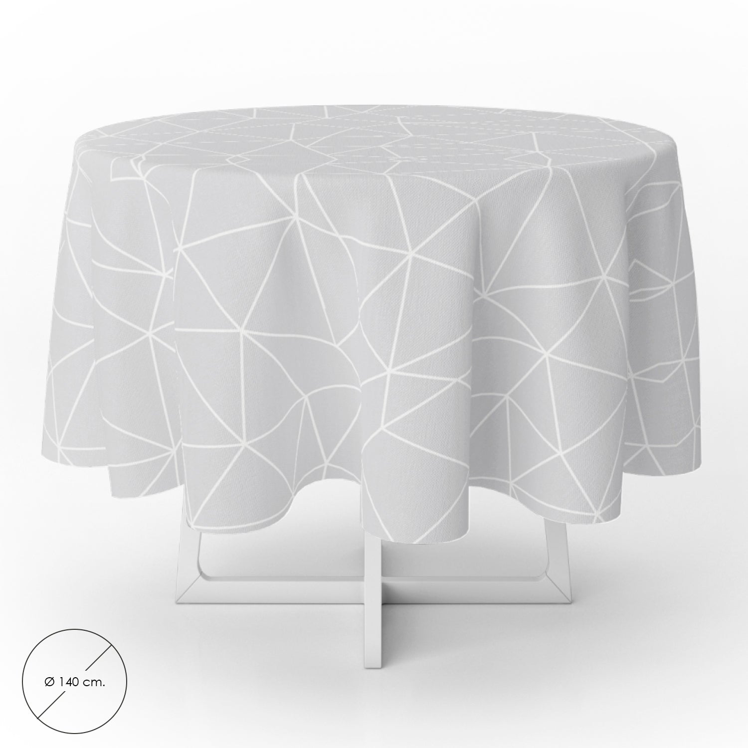 Oleado Cinzento Geométrico Toalha de Mesa Impermeável PVC Antimanchas Ø 140 cm. Uso interno e externo