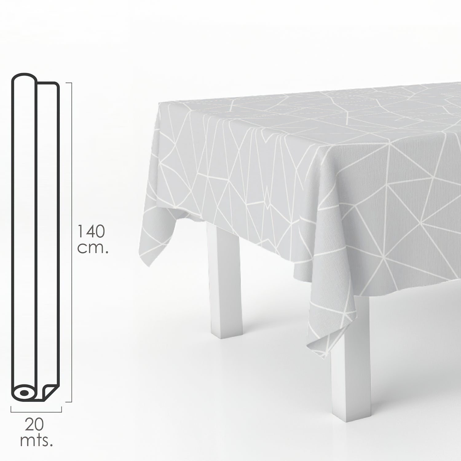 Toalha de mesa oleada retangular geométrica cinza. PVC resistente a manchas à prova d'água 140 cm. x 20 metros. Rolo recortado. Dentro e fora