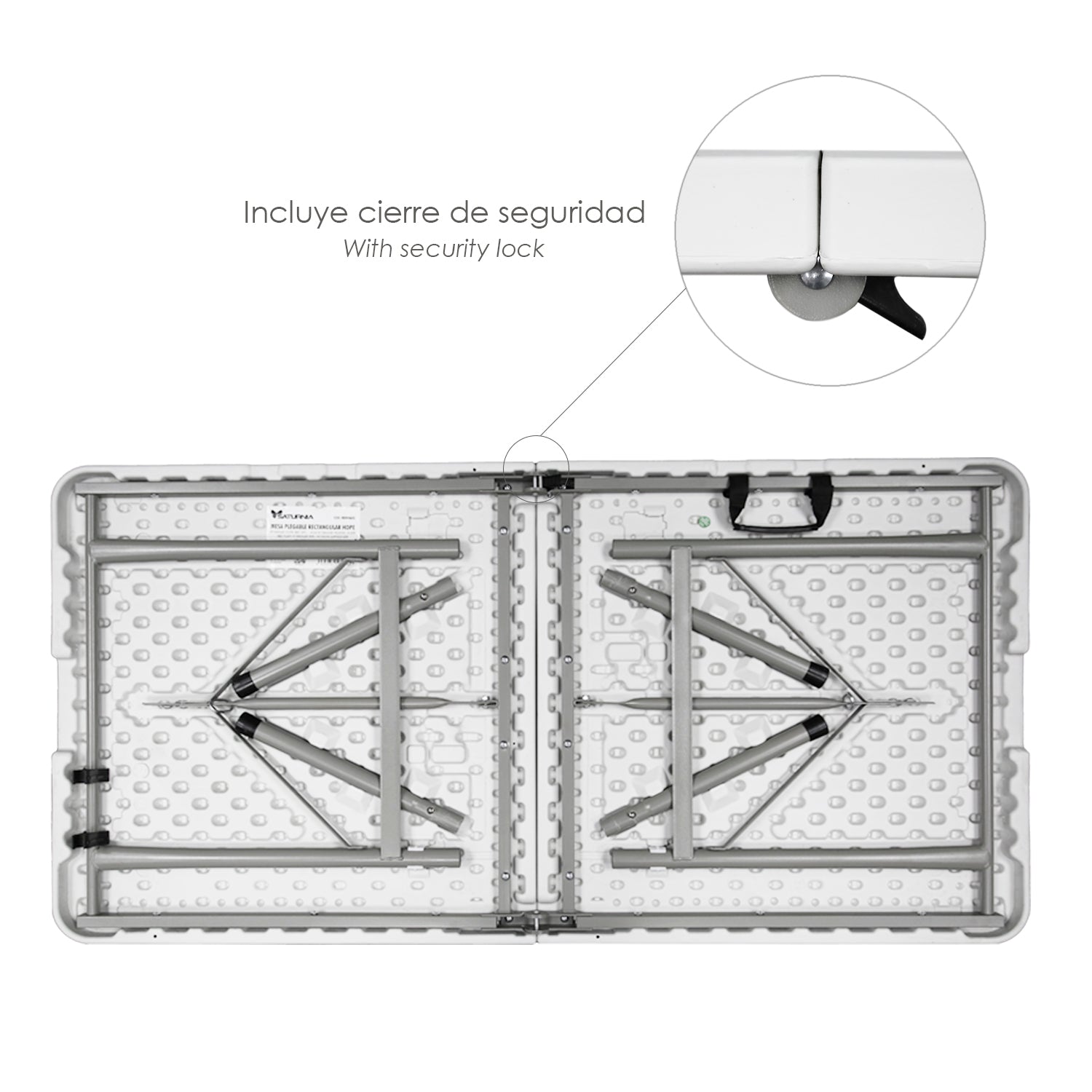 - Possui trava de segurança para regular sua abertura total e evitar que a mesa feche. As pernas também possuem um sistema de segurança, para que não fechem involuntariamente.
