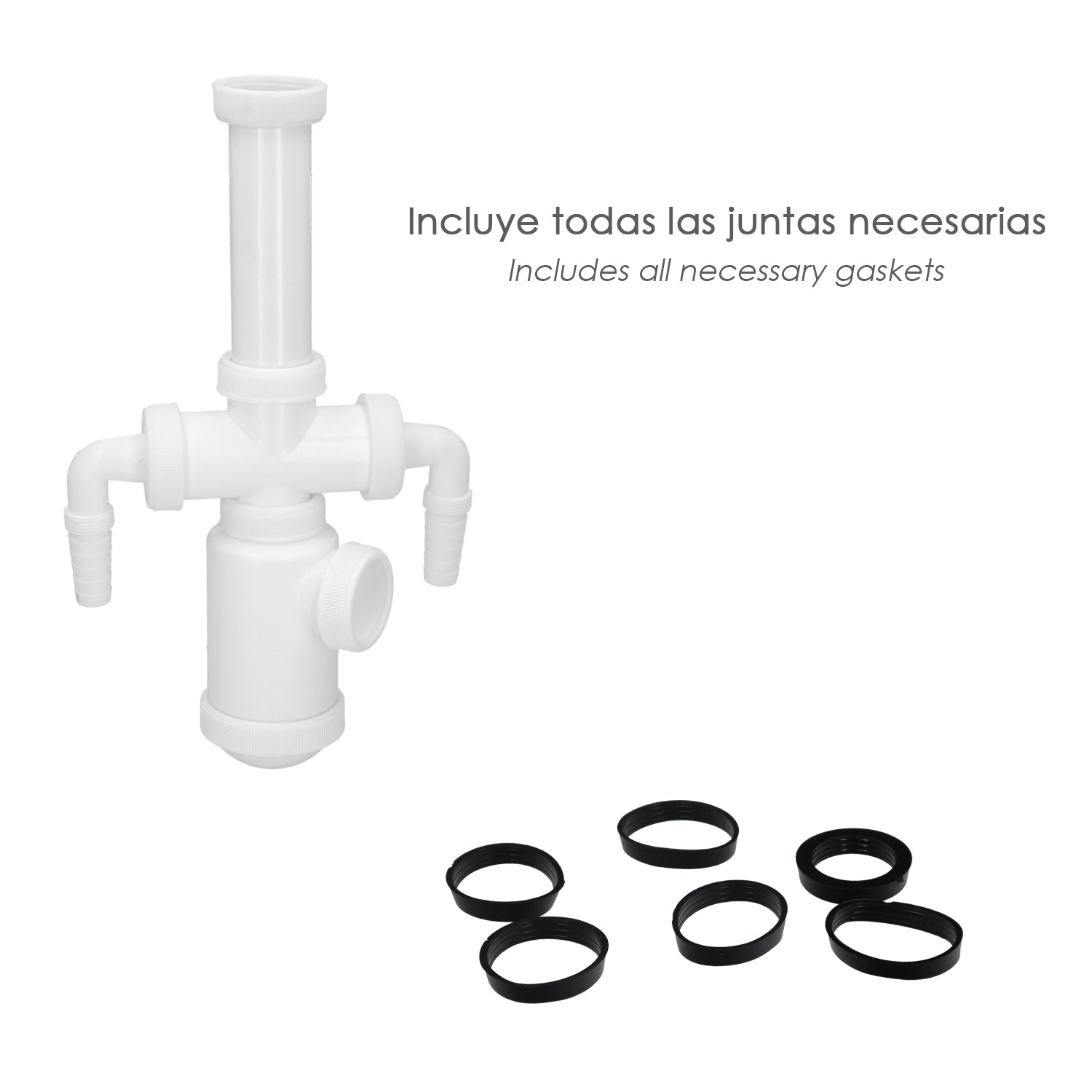 - Artículo también conocido como desagüe lavadora, sifon extensible, sifón lavadora, sifon botella doble, etc.