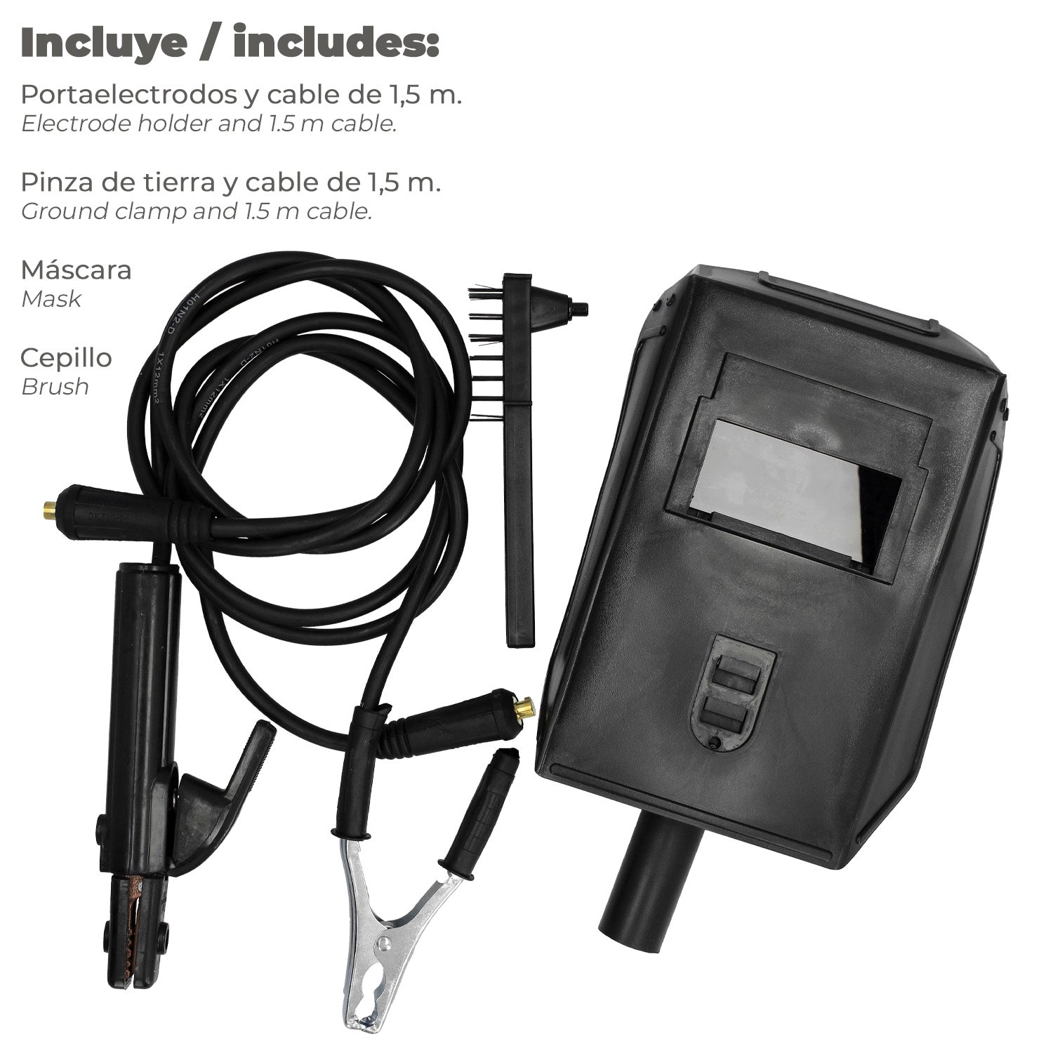 - Tipo de electrodo utilizable: rutilo, básicos, inoxidables, fundición de hierro