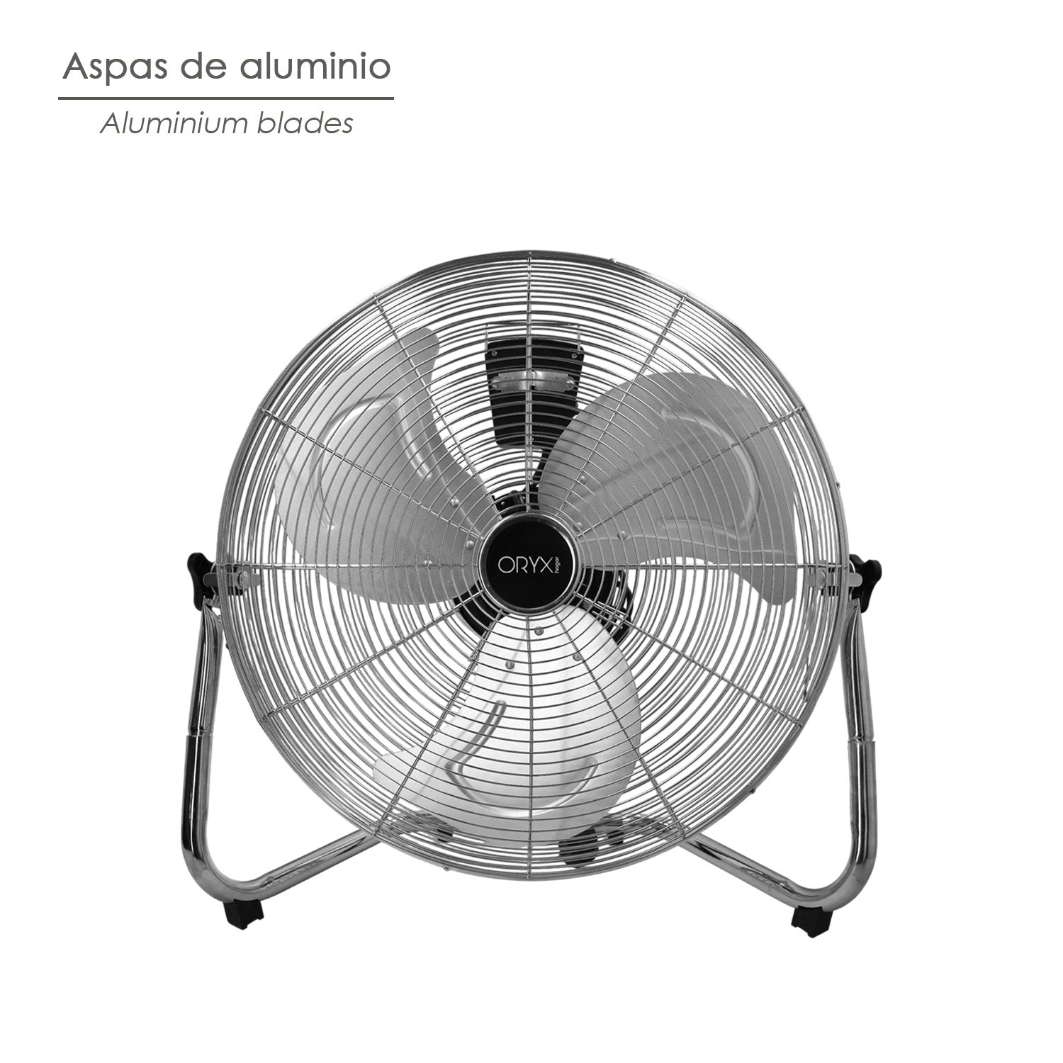 - Con unas medidas de 57,5 x 59 cm, este potente ventilador cuenta con una potencia de 120 W y un diámetro de 50 cm para una óptima circulación del aire.